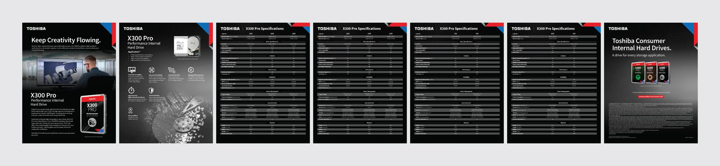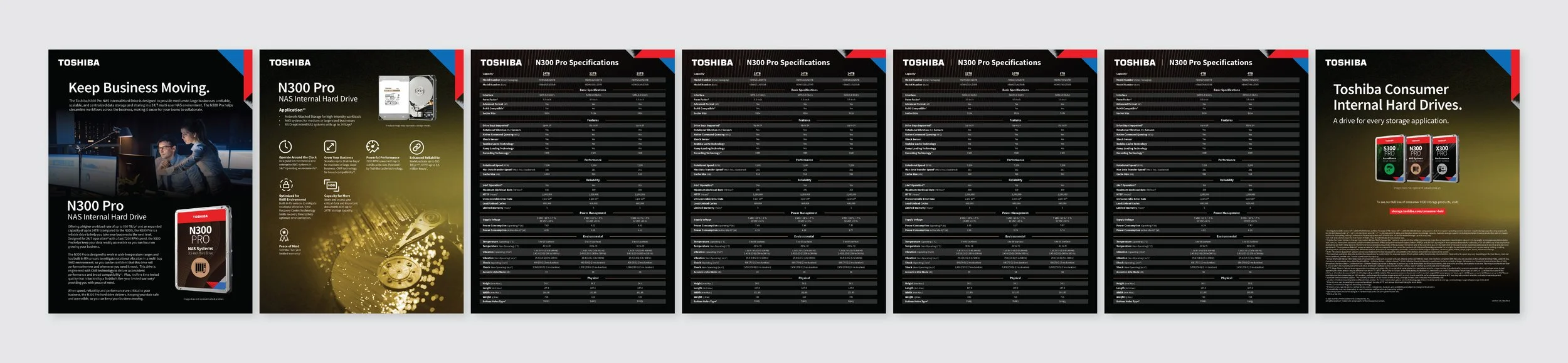 Responsibilities: Designed and curated monthly social media posts to maintain brand visibility. Redesigned the Toshiba Amazon consumer HDD storefront, internal hard drive lineup, and consumer packaging to modernize the brand presence. Revamped Toshiba sales sheets to clearly highlight detailed product specifications and capabilities, supporting both retail and B2B sales efforts.